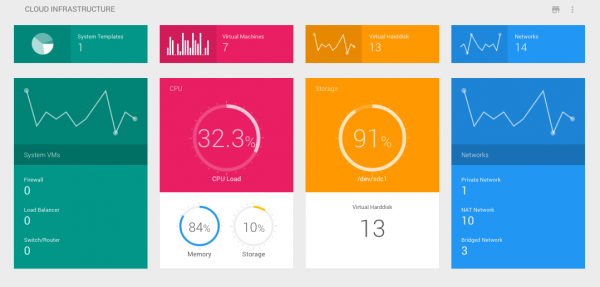 ezStackr Cloud Appliance offers a very simple to use VM management interface. We represent all the cloud resources graphically. Using the Control Panel of the VM, you can easily operate the virtual machines that are running in the appliance. Adding of resources like network adaptors and console is just a click away.