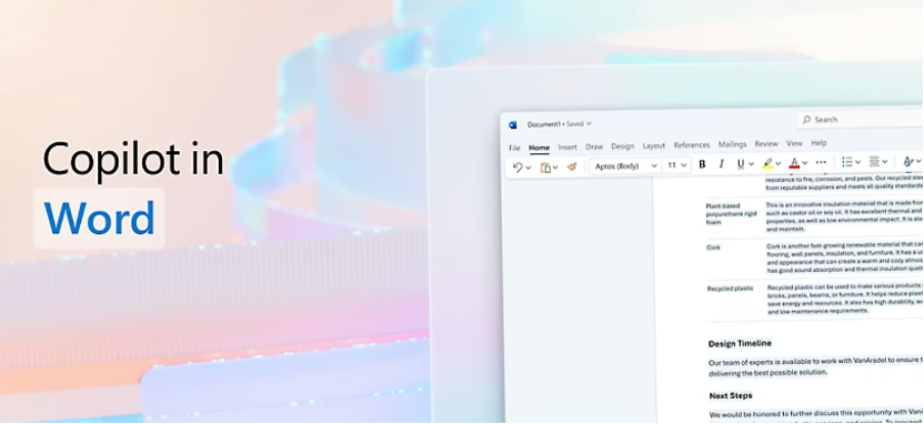 Word中的Copilot将与你一起写作、编辑、汇总、提出建议和创建。创建初稿、将内容添加到现有文档、汇总文本和改写部分(甚至整个文档)以使其更为简洁。